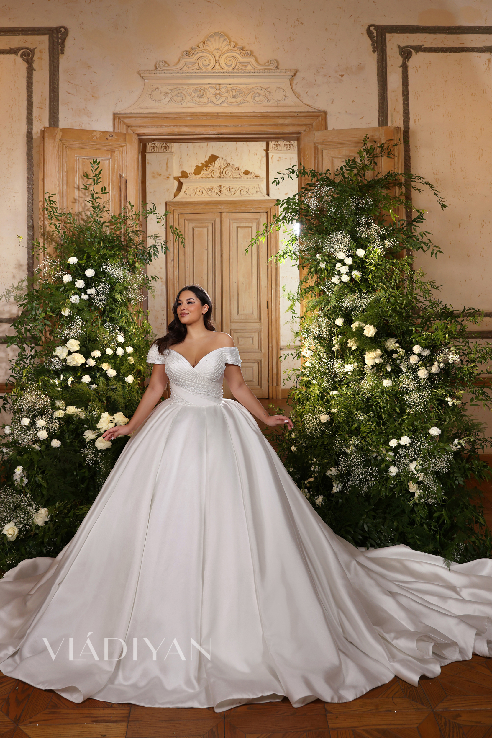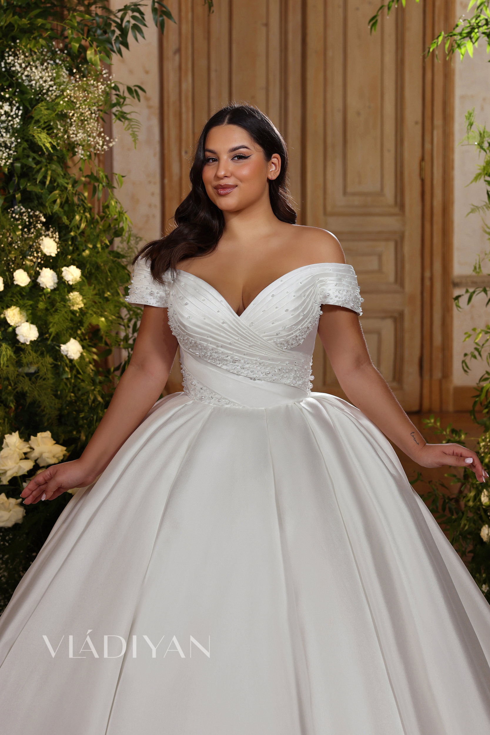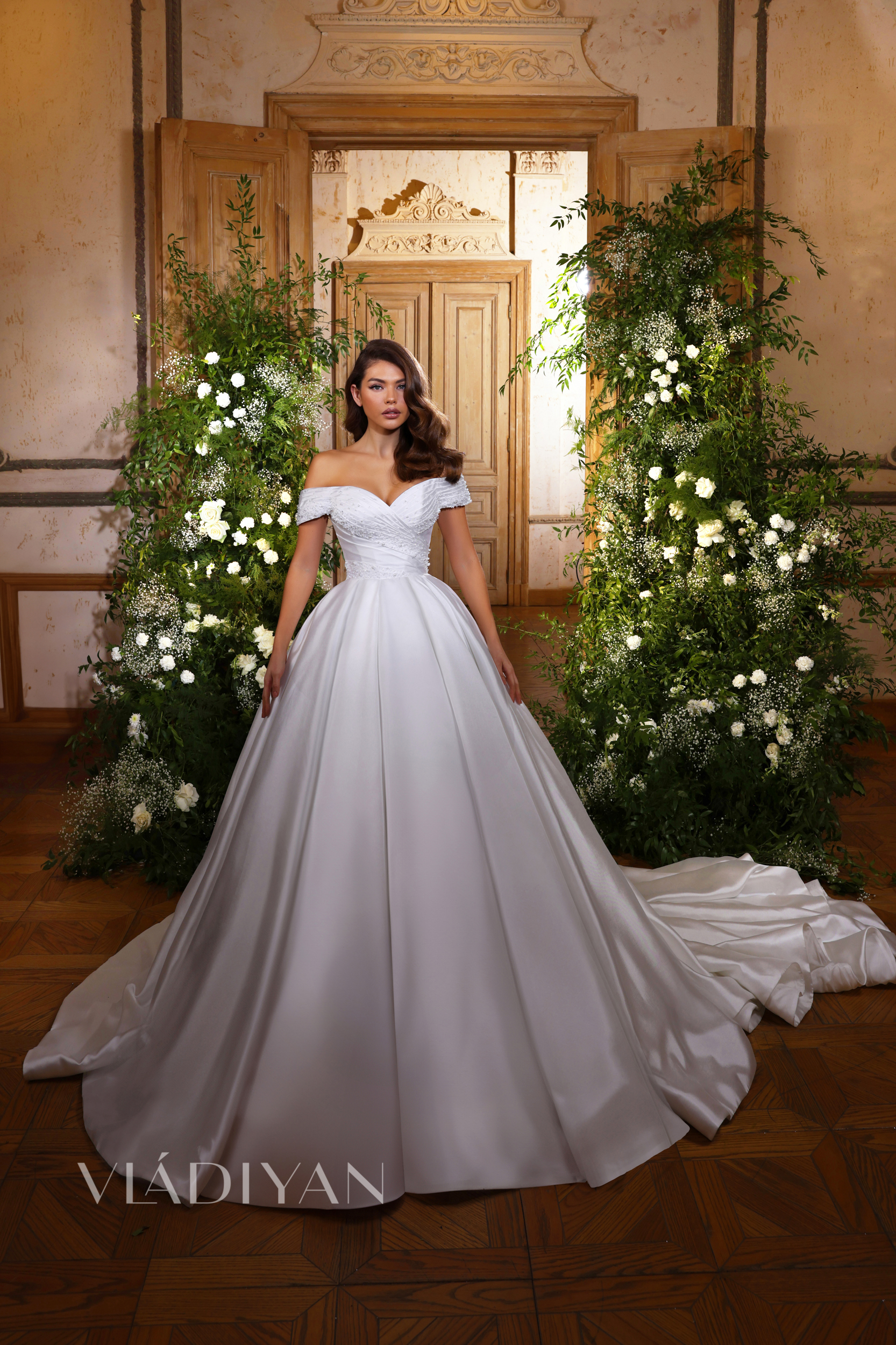 HC2534 – Elegant mikado ballgown highlighted by a draped corset embellished with a mix of pearls. A timeless choice.