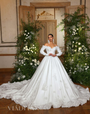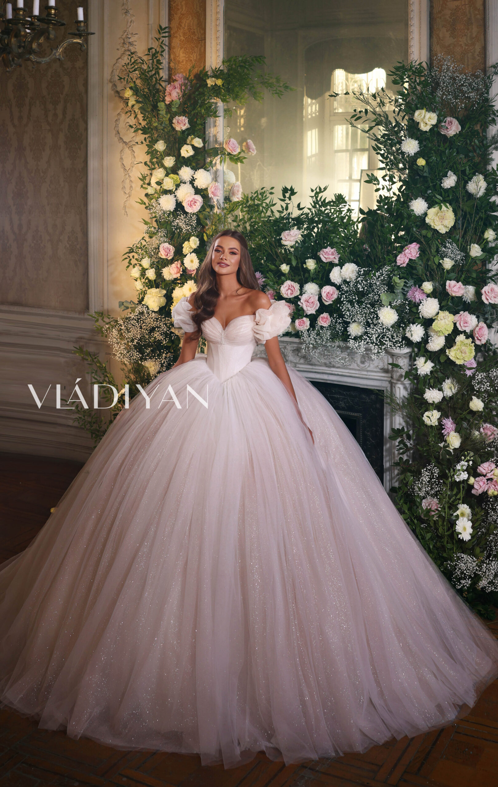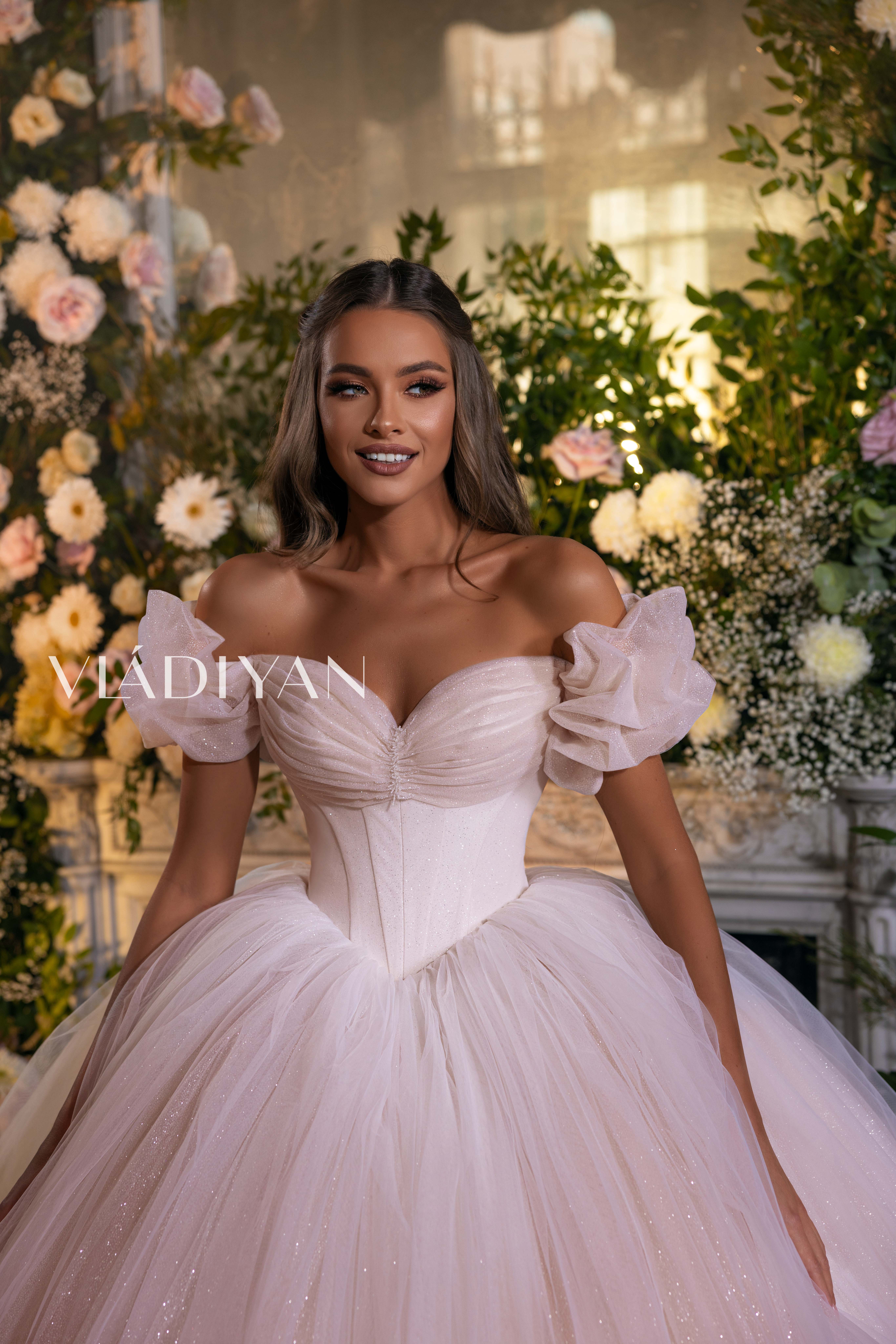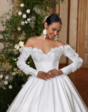 NB2323 – Looking for a Cinderella dress? This is the one! Features eye-catching short sleeves, a sweetheart neckline and puffy skirt.