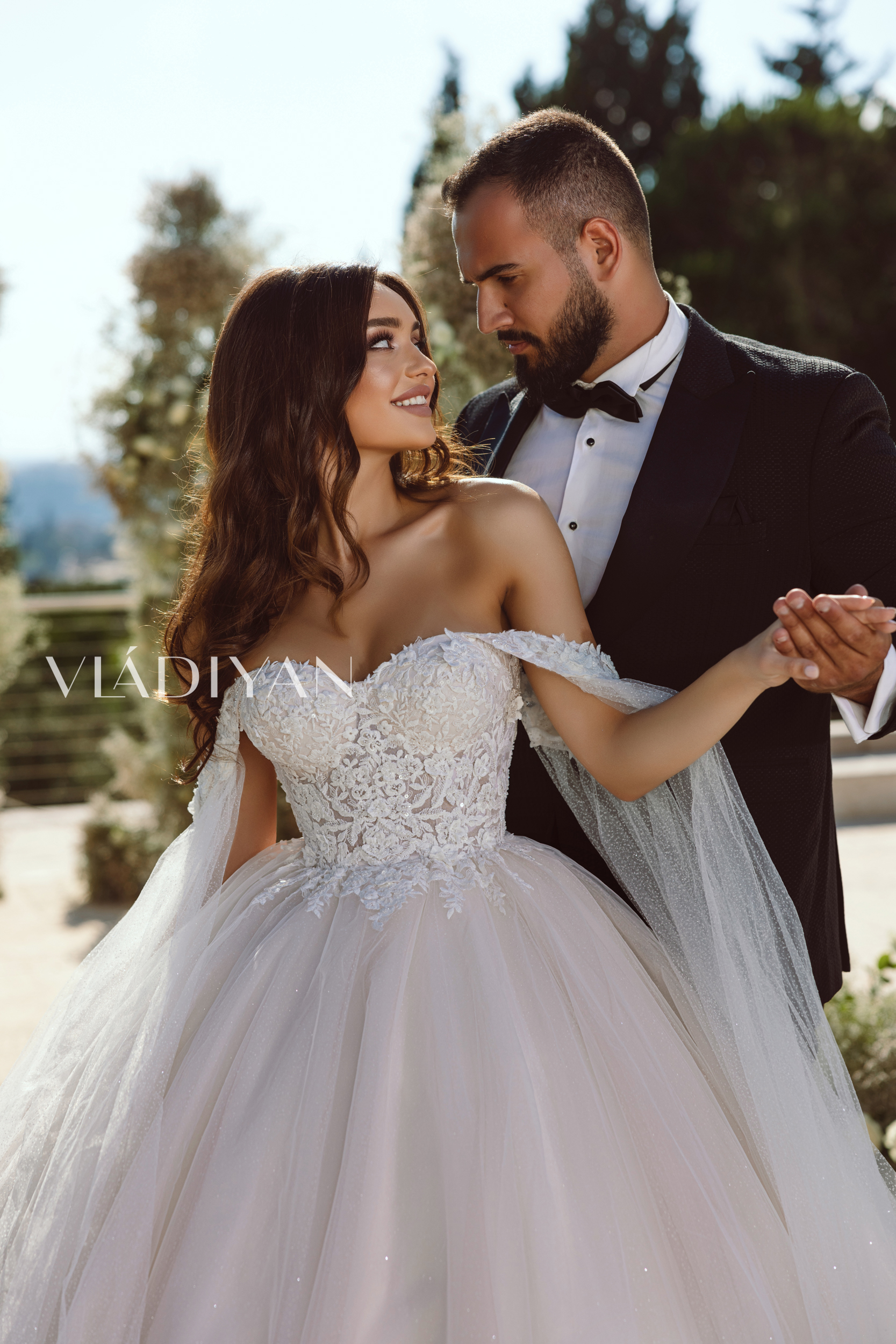 SP2361 – The main accent of this look is detachable hanging sleeves. Tulle skirt is airy and puffy. The corset is embellished with flowers and leaves that together make a beautiful pattern.